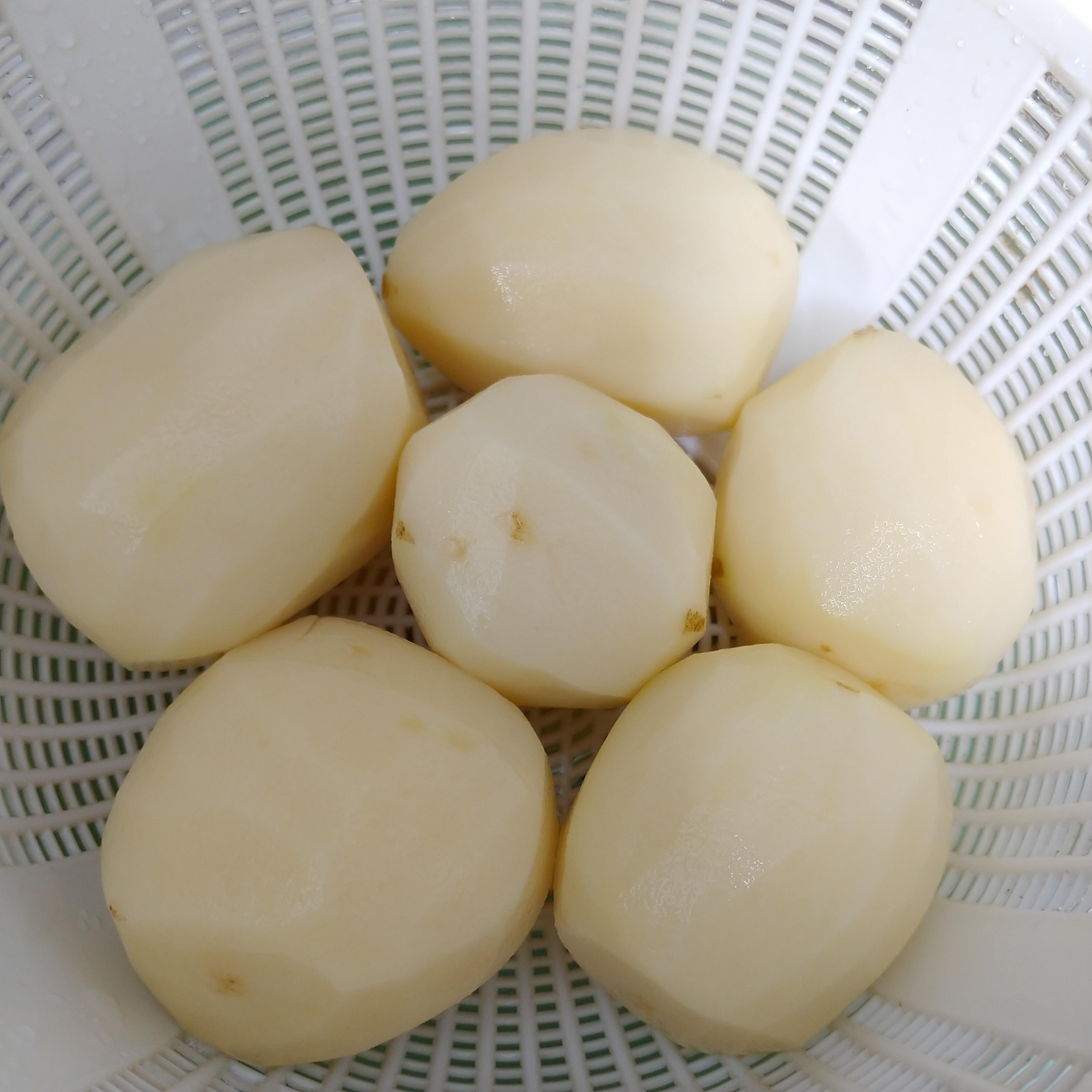 1. 감자 5~6개를 씻어 껍질을 제거해줍니다. 반으로 자릅니다.