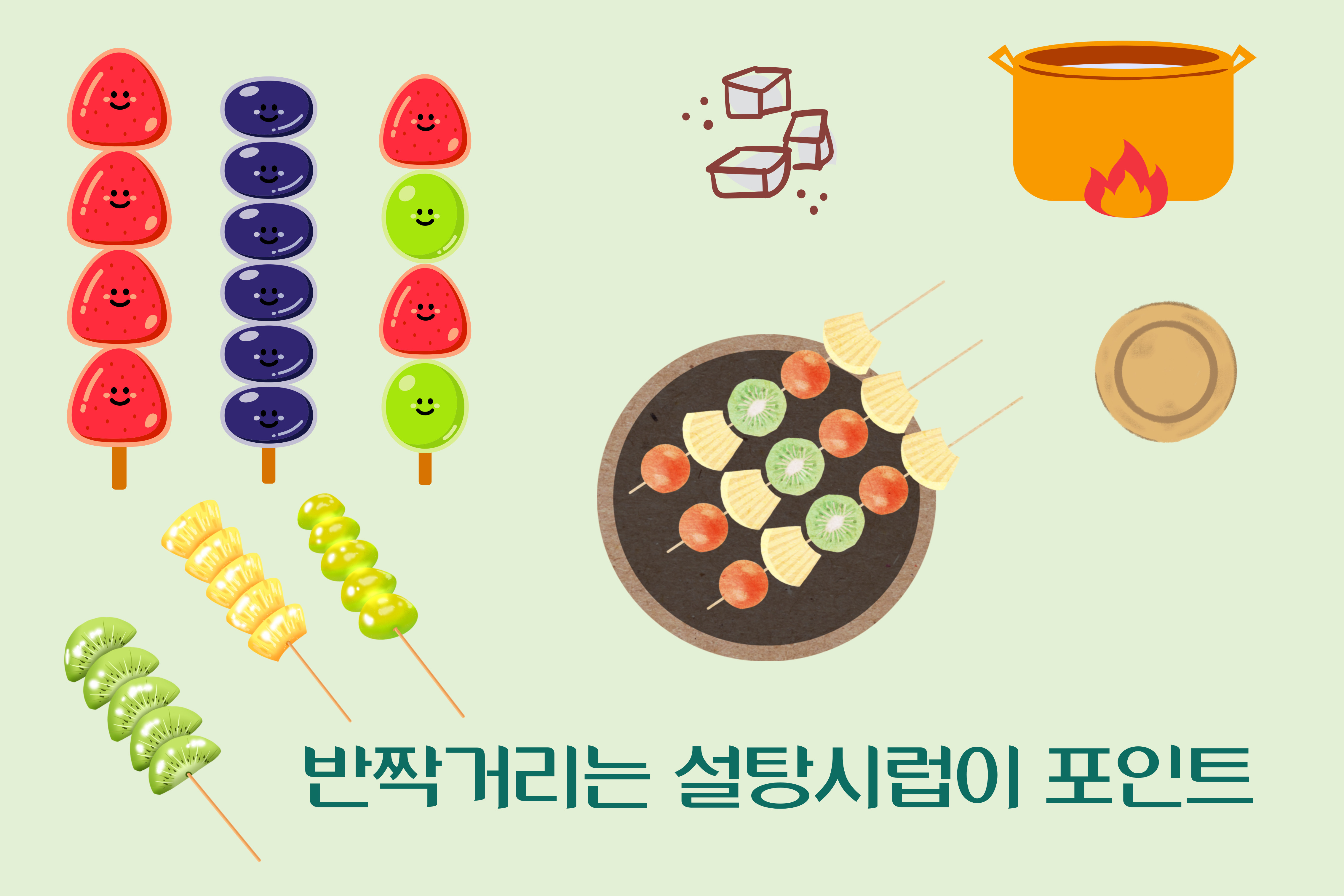 - 과일, 꼬치, 설탕200g, 물 100g을 준비해주세요.